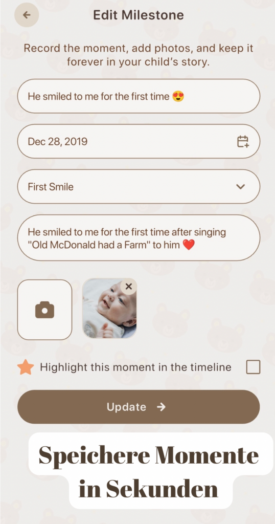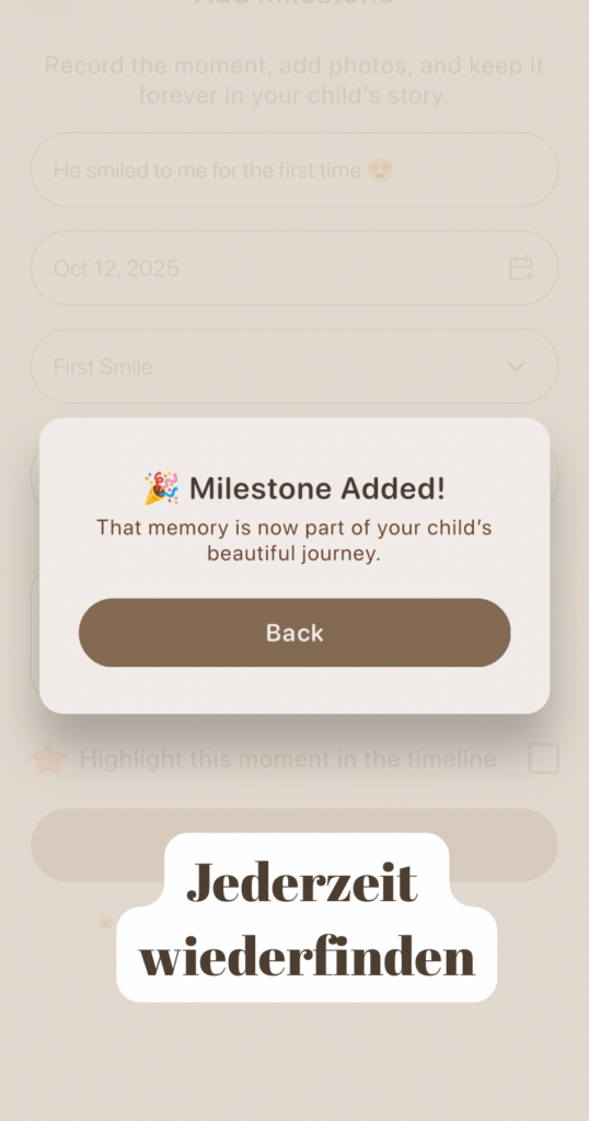 Timeline ist eine App, die dir hilft, die wichtigsten Momente deines Kindes festzuhalten –